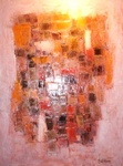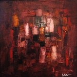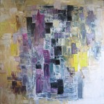 This painting was exhibited at the Beurs de Berlage in Amsterdam in 2009. I was inspired by the architecture in Amsterdam, which is reflected in the "block technique" created using a palette knife. The colours are a combination of soft and light, and dark and bold colours which reflect how I was feeling at the time, as I was pregnant with my son.