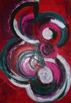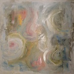 I was pregnant at the time and the colours are soft and gentle, reflecting my mood. I wasn't sure if I was having a boy or a girl, so there are touches of blue and pink. The curves symbolize the female body as I was very much in touch with the roundness and fullness of my changing body at the time. It was a very happy time and the painting came together quickly.